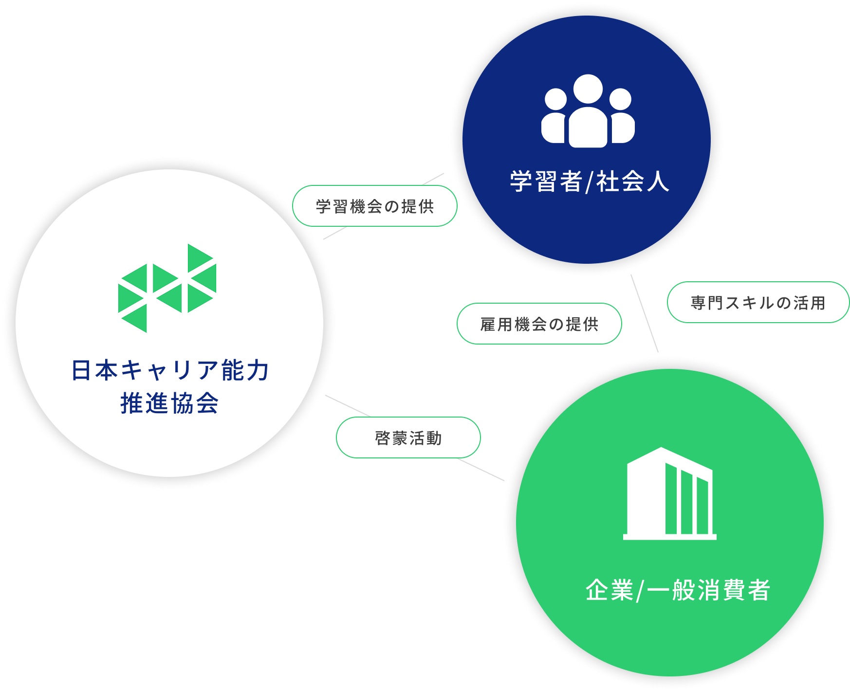当協会は、社会で求められる実践的なスキルや心の在り方を身につけられる多様な学習プログラムや資格認定制度を提供し、すべての人が「成長し続けられる仕組み」の構築を目指します。特に、リスキリング・アップスキルに対応した教育体系や、社会課題を解決するための専門能力育成に力を入れ、未来に強い人材を育成します。また、学びの成果を実践につなげるため、企業や教育機関との連携を強化し、学習者のキャリア形成を生涯にわたり支援します。