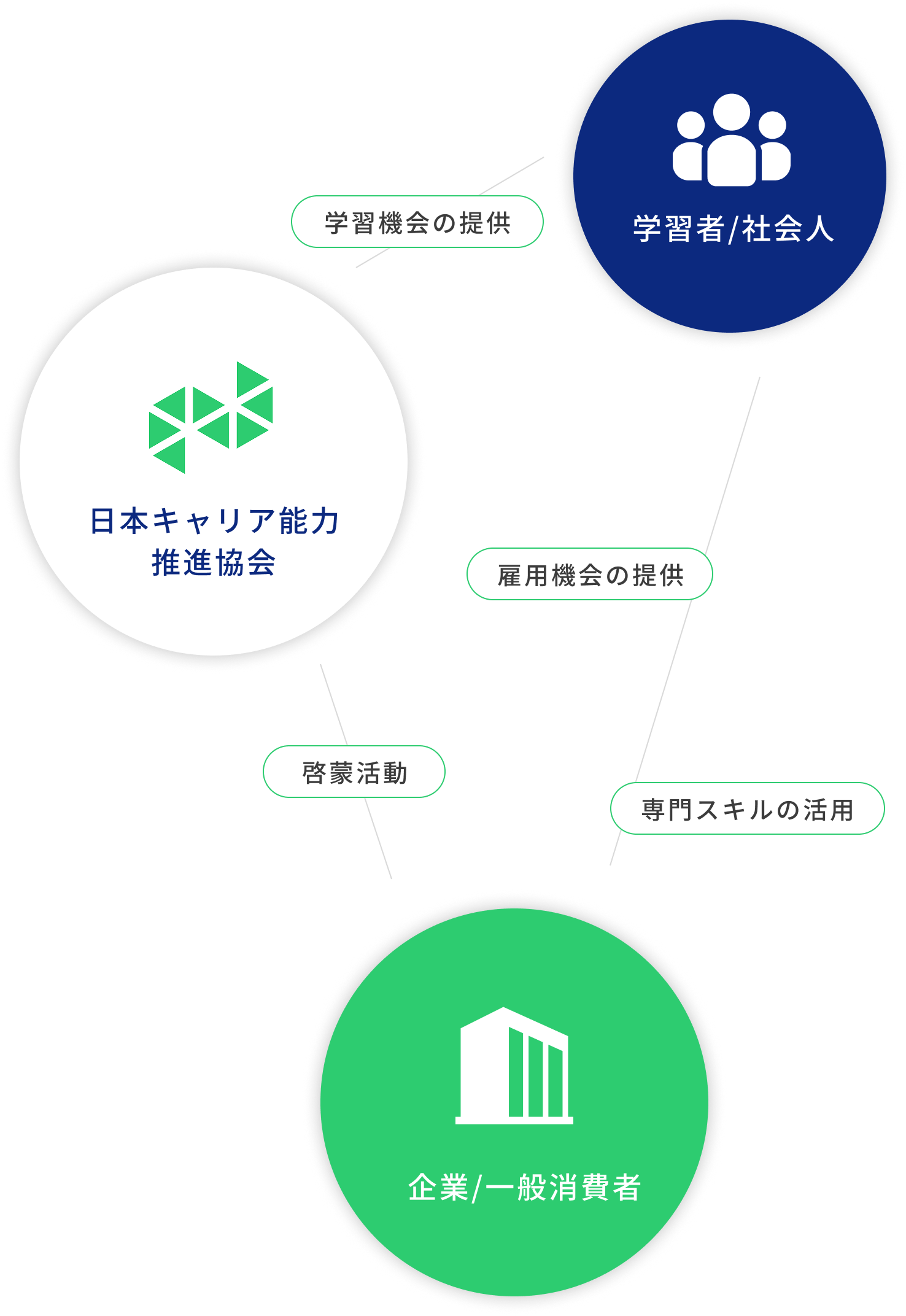 さらに、個人の成長が企業の発展や地域社会の活力へと結びつく「キャリアの好循環」を社会全体で実現することを目指しています。成長した人材が周囲に影響を与え、新たな価値やイノベーションを生み出すことで、日本全体の競争力向上に寄与できると信じています。当協会は、未来志向の教育モデルを提示し、日本の人材育成のスタンダードを創り出す存在として、持続可能な社会の構築に貢献してまいります。